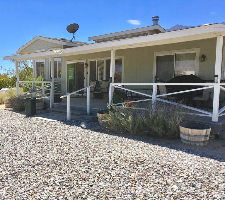 Transport your mind, body and spirit to our secluded, yet ideally located, spacious 3 bedroom, 2 bath getaway in charming Lone Pine! The house rests among stunning views of the surrounding and infamous Alabama Hills, Eastern Sierras, Mount Whitney and Inyo Mountains. Prepare and enjoy a big, leisurely breakfast with your friends and family in the bright, sprawling and fully-stocked kitchen with stools and large island, or sip your coffee on the covered deck while gazing at the sunrise from behind the Inyo Mountains in the distance and plan your adventures for the day. The living room features an inviting, wrap around couch, large recessed skylight, 55" flat screen tv, bluetooth sound bar. One of the most exciting features - our game room offers a great space to entertain with a ping pong table, board games and a picnic-style table to set up with snacks to fuel your fun and keep the competitions going ;) The beautiful and spacious master bedroom has a queen bed with a very comfortable Tuft & Needle Adaptive® foam mattress, and features an attached sitting/reading room with sleeper sofa, coffee table, and separate access to the back patio. The master bath boasts sprawling mirrors, two sinks, a separate shower, large tub, (SORRY, NO JETS) and enclosed toilet. The second bedroom has a queen size bed and the third bedroom has two twin beds. Both of these rooms share a full bathroom with tub/shower and two sinks. There is also an attached potty seat for smaller children, which can be lifted for adults. Tap into your adventurous spirit and choose from countless wilderness excursions within just minutes of our home - whether it's exploring the uniquely breathtaking Alabama Hills, hiking in the Sierra high country to swim in pristine alpine lakes, summiting Mount Whitney, or simply setting off on dozens of nearby hiking/walking trails - the choice is yours! Enjoy the stunning view of the property from the covered deck that comes installed with a grill, outdoor dining table and even a refreshing mist sprayer extending all the way around the deck to cool you off after a day in the sun! Guests are able to use the washer and dryer in the laundry room as well. We provide you with all linens, towels, and many bathroom amenities you may need during your stay, and if there is something else you need, please let us know ahead of time and we will do our best to accommodate you! We really think you will love our comfortable home nestled amongst some of California's most stunning wilderness and natural resources as much as we do, and we are excited for you to see for yourself! Thank you for considering our home for your stay, and we look forward to hosting you! BTW, The property and nearby areas are also home to many native plants, wild animals, snakes, rodents and arachnida. Please enjoy viewing, but avoid disturbing the fragile plants and wildlife that live there. Please enjoy and explore with care. We continue to take extra steps to clean and sanitize frequently touched surfaces between reservations. We also provide hand sanitizer, anti-bacterial sprays and disinfecting wipes for your peace of mind.