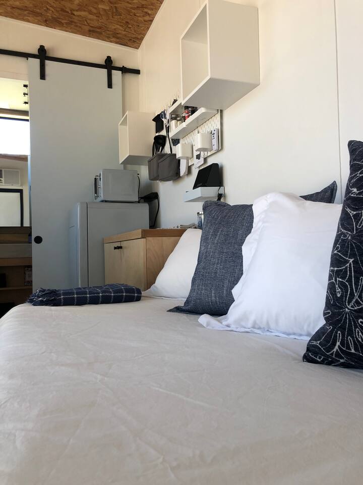 This is the place for you -If you want to try something new -If you want a new adventure -If you want to remember what it was like sleeping in a twin bed. 75" long so, may not fit someone over 6'2". -If you don't mind sleeping in a separate bed from your partner This is most likely NOT the place for you -If you are noise sensitive and have a hard time sleeping... -If you need a big bed to spread out in... -If you're an over packer- space is limited -If you are not ok being in an RV park and having neighbors. (Closest neighbor is approx 40' away) TINY only has 50 amps of power and the on demand water heater requires 50 amps. Only 2 lights are able to be used while taking a hot shower. BREAKER MAY SHUT DOWN AND WOULD NEED TO BE RESET. This hasn't happened in over a year but just in case.