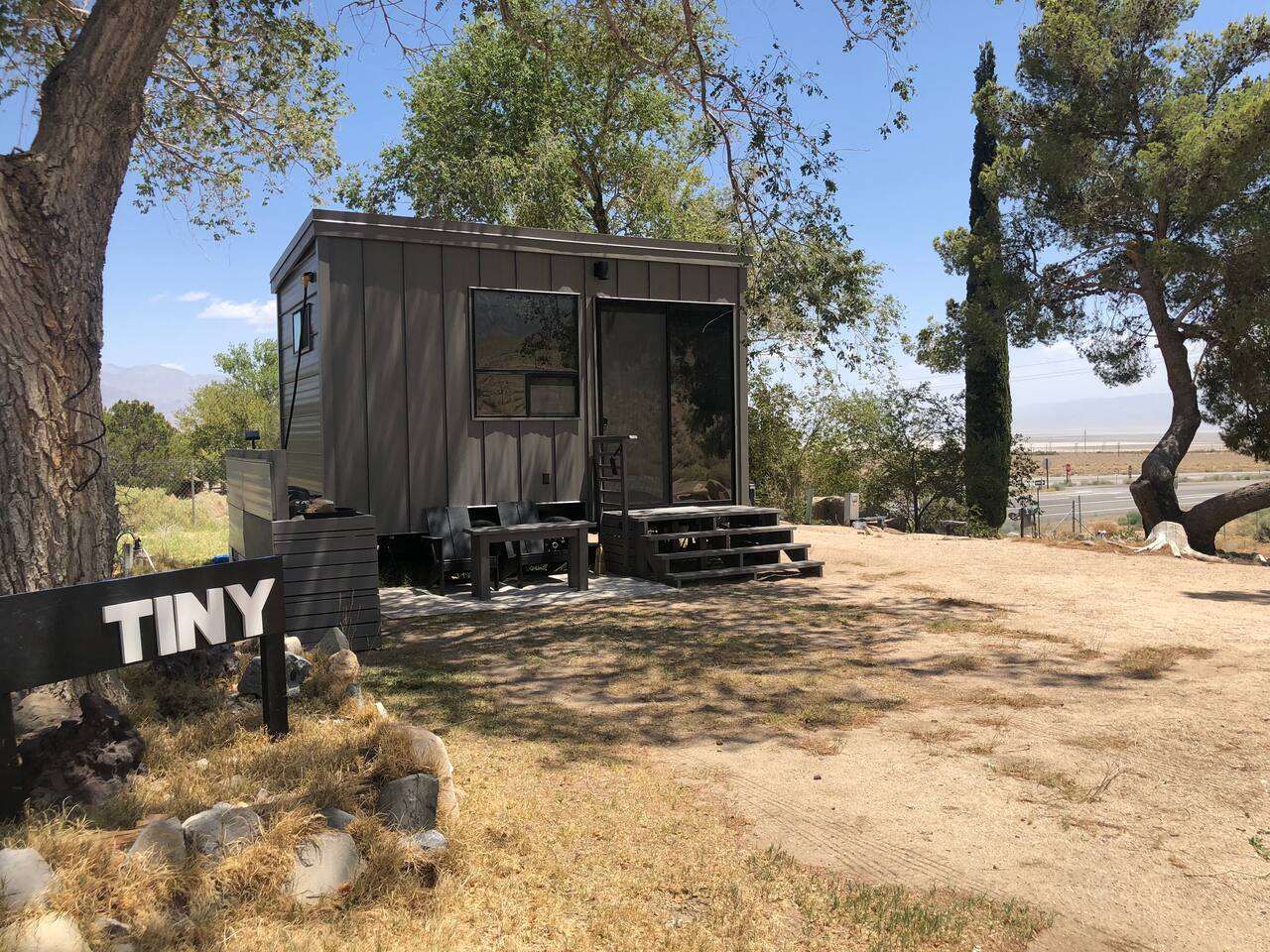 THINK TINY, THINK ADVENTURE Modern TINY (16') Home on Wheels was inspired and built with a desire for minimalism, clean lines and efficiency of space. It has all the modern amenities you need in the midst of Nature. Space is sufficient but limited. Tiny is located inside "Lone Pine Mobile Oasis" RV PARK, on the west side of HWY 395, and Lubken Canyon. There is Hwy noise and there are neighbors. Semi's do drive the Hwy during the night. Please preview location before booking. NEW- We have WiFi!